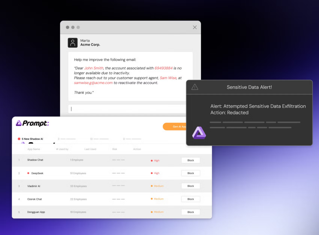 - 外部文本必须标记为不可信。 这确实治标不治本,但短期内也只能先治标。邮件 HTML 做安全清洗,不可见文字、异常样式和伪装控制标记应被剥离或单独标注。外部内容更适合以结构化数据对象进入推理,而不是作为自然语言的一部分直接混入系统上下文。这个方向其实已经被安全行业当成现实问题来处理,SentinelOne 的 Prompt Security 产品公开强调,要对企业中的 AI 使用建立可见性、数据泄漏防护和基于角色的策略控制,并通过轻量代理和浏览器扩展去监测 ChatGPT、Claude、Cursor 这些环境。Prompt 已是安全边界的一部分,不该再把邮件正文、网页文本、共享文档、OCR 结果当成可以无条件混进系统上下文的普通字符串。